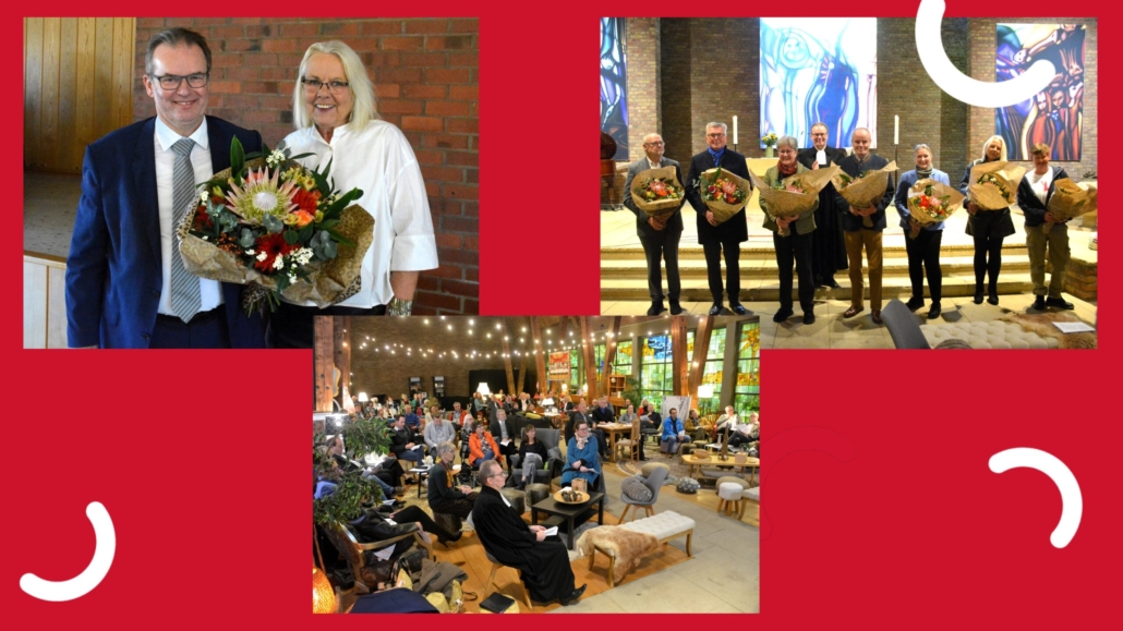 Superintendent Bernhard Seiger verabschiedete Pfarrerin Dr. Yvonne Brunk als Mitglied des Kreissynodalvorstands (KSV), Lothar Ebert, Reinhard Pachaly und Peter Pfannkuche als KSV-Mitglieder und Mitglieder der Kreissynode sowie Professor Udo Bühler und Marion Köhler als Mitglieder der Kreissynode. Seigers Dank galt insbesondere Ursel von Oberg, die als Leiterin der Superintendentur mit Wirkung vom 1. Februar 2026 in den Ruhestand tritt. Im Gottesdienst bekam Ursel von Oberg einen Blumenstrauß als Dank, während der Synode bedankte sie sich beim Superintendenten mit einem Strauß Blumen für die gute Zusammenarbeit.