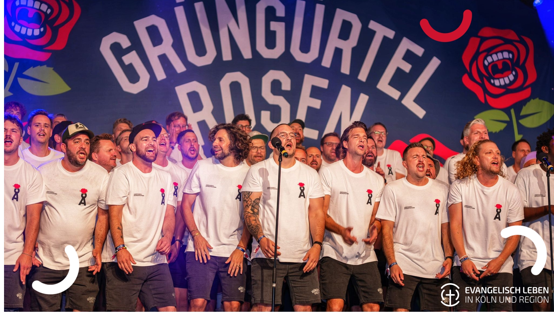 Heiko Falk: Auf jeden Fall inspiriert dadurch, dass wir den Grüngürtel als ein Element in der Stadt Köln sehen, das viele Veedel und somit auch die Menschen verbindet. Deshalb ist der Colonius in unserem Logo wiederzufinden, weil er ja auch im Grüngürtel steht. Wie das florale Anhängsel dazu kam, ist nicht genau überliefert. Man kann es schon als singende und klingende Rosen deuten. Auch als Wortspiel ist die Nähe zu der unangenehmen Krankheit „Gürtelrose“ nicht von der Hand zu weisen, und das gab in der Vergangenheit auch schon mal die ein oder andere kritische Anmerkung diesbezüglich. Aber der Name war und ist ausdrücklich nicht despektierlich gemeint. Wer uns kennt, weiß aber auch, dass bei uns im Allgemeinen immer eine gute Portion Spaß und Ironie mit dabei ist.