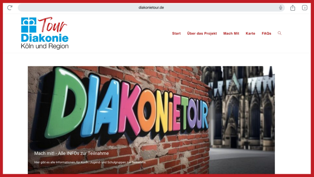 Nach einem Einstieg zu fiktiven Lebenssituationen in einem Kölner Stadtteil, geht es in der zweiten Etappe auf eine digitale Schnitzeljagd mit Hilfe der App „Actionbound“. Dort erwarten die Teilnehmenden spannende Challenges und Fragen zu den Themen Bahnhofsmission, Barrieren rund um den Kölner Hauptbahnhof und Wohnungslosigkeit., „Wir wollen den jungen Menschen nicht nur Wissen vermitteln, sondern sie direkt ins Geschehen einbinden“, sagt Marina von Ameln, Mitinitiatorin des Projekts im Rahmen ihrer Tätigkeit beim Diakonischen Werk. In der dritten Etappe richtet sich der Blick auf diakonische Angebote vor Ort im Veedel bzw. der Region. Eine interaktive Karte diakonischer Einrichtungen und Projekte soll durch die Beiträge der Jugendgruppen schon bis Ende Juni mit Leben gefüllt werden. „Je mehr Jugendliche sich beteiligen, desto größer und vielfältiger wird die Diakoniekarte – und damit steigt der Mehrwert für alle Teilnehmenden, die von den zusätzlichen Stationen und Erlebnissen profitieren können.“ bewerben Daniel Drewes vom Jugendreferat und Thomas vom Scheidt vom Schulreferat das Projekt. Die Diakonietour fördert nicht nur das Kennenlernen der Diakonie als Aufgabe von Kirche, sondern motiviert Jugendliche auch, sich selbst aktiv in sozialen Projekten zu engagieren.