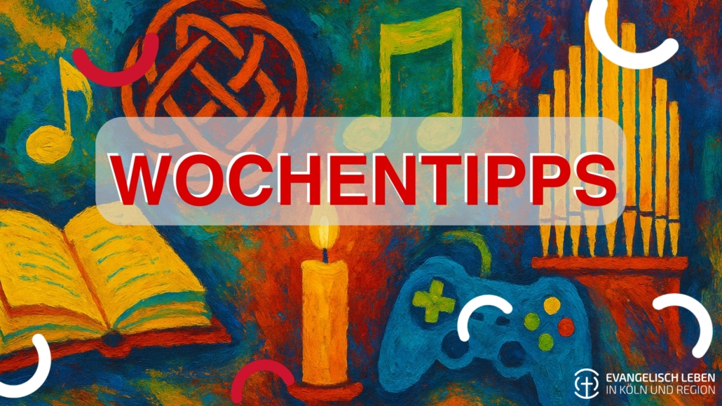 In dieser Woche öffnen unsere Wochentipps wieder an vielen Orten die Türen für inspirierende, heitere und berührende Momente: Von der satirischen Benefizlesung „Feine Ablese“ mit Ismael Fischmord und Stefan Reusch in Bergisch Gladbach über einen Abend zur keltischen Spiritualität in der Melanchthon-Akademie bis hin zur Konzertmeditation „Die Botschaft vom Frieden“ im Altenberger Dom. Die GameNight in Köln Niehl-Riehl lädt zum gemeinsamen Zocken ein, während in der Antoniterkirche festliche Orgelmusik die Reihe „KirchenTöne“ fortsetzt. In Hürth verbindet das „Literarische Geburtstagsständchen“ Musik und Worte, und in Weidenpesch findet die Finissage der Ausstellung „Apokalypse“ mit Impulsen von Frank Vogelsang und Markus Zimmermann statt. Der WDR Rundfunkchor bringt mit „Lux Aeterna“ ein Dunkelkonzert voller Tiefgang in die Trinitatiskirche, und in Dellbrück erlebt das Oratorium „Psalmen und Licht“ seine Uraufführung. In Bayenthal erklingen am Ewigkeitssonntag Brahms’ „Deutsches Requiem“ und Arvo Pärts „Fratres“. Und schließlich öffnet das AntoniterQuartier seine Türen für einen Blick hinter die Kulissen des kölschen Fastelovends bei „Inside Karneval“.